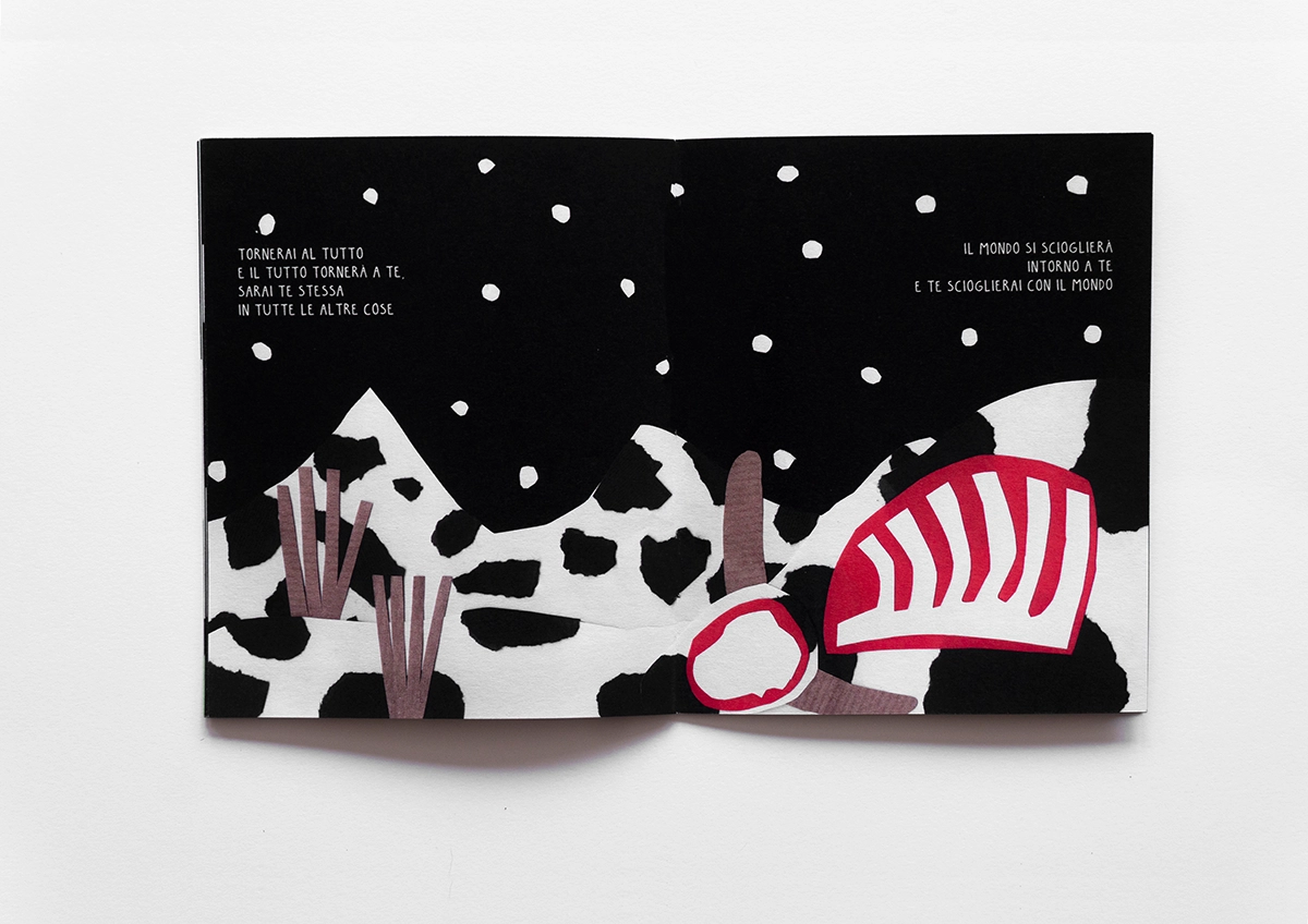 La mucca is a hybrid illustration project that seeks to combine narrative and poetic images with an informative part, also illustrated. A cow dies, but does not disappear: from this situation many other phenomena are triggered,which are as much a part of life as death itself.
